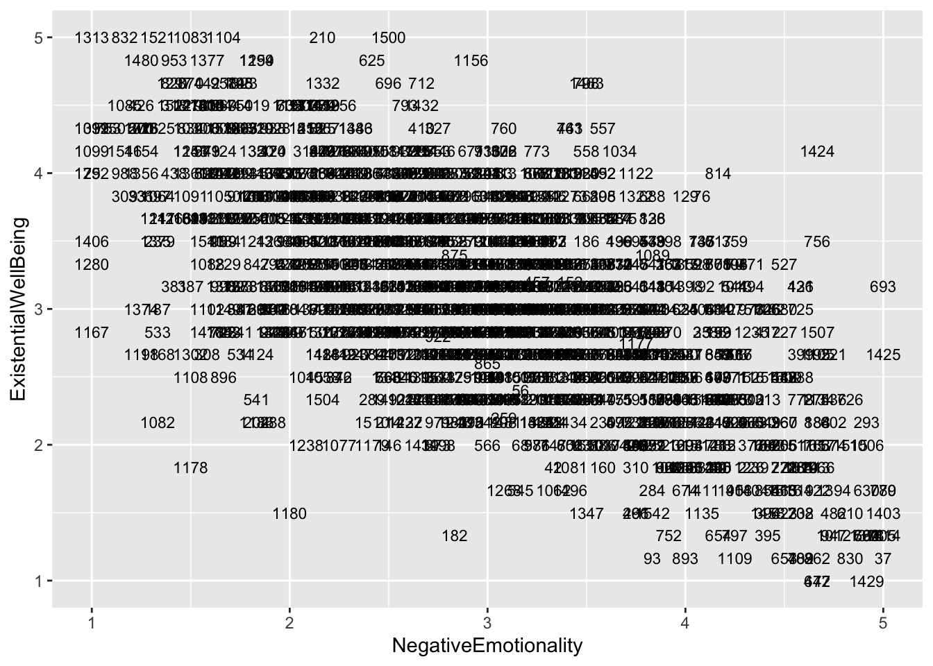 ggplot(aes(x = NegativeEmotionality, y = ExistentialWellBeing), data = big5) +