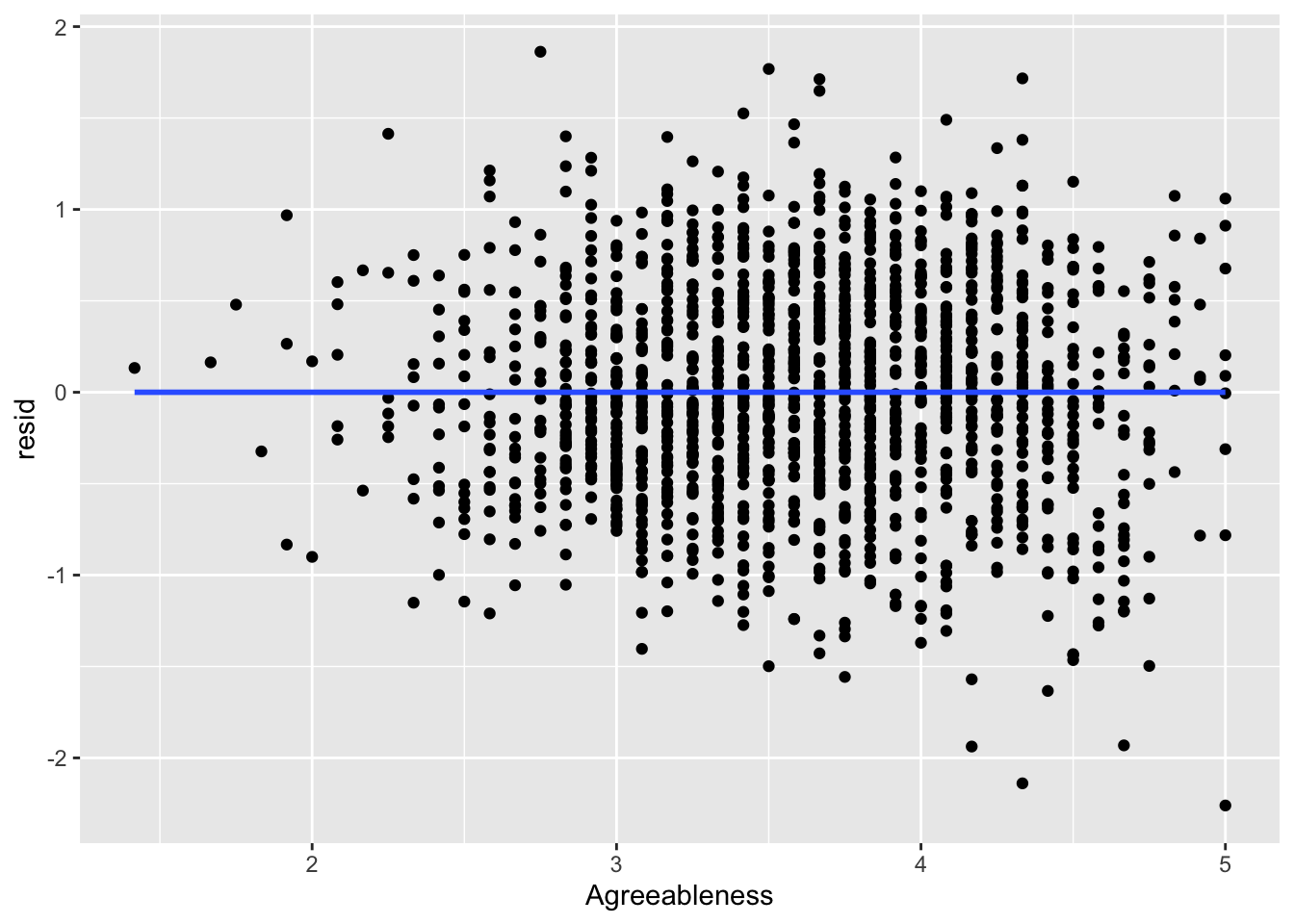 ggplot(data = big5, mapping = aes(x = Agreeableness, y = resid)) +