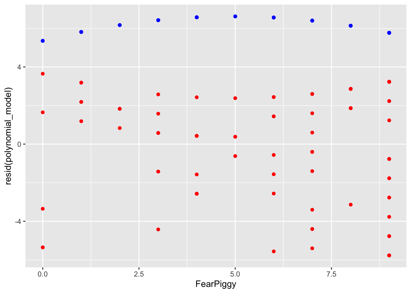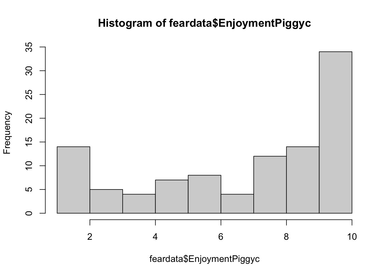 lm(formula = EnjoymentPiggy ~ FearPiggy + FearPiggy2, data = feardata)