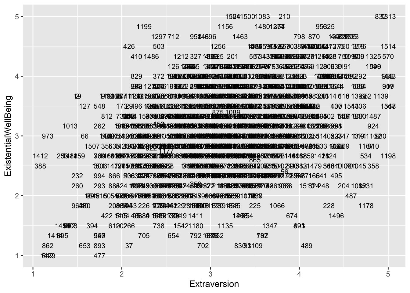 ggplot(aes(x = Extraversion, y = ExistentialWellBeing), data = big5) +