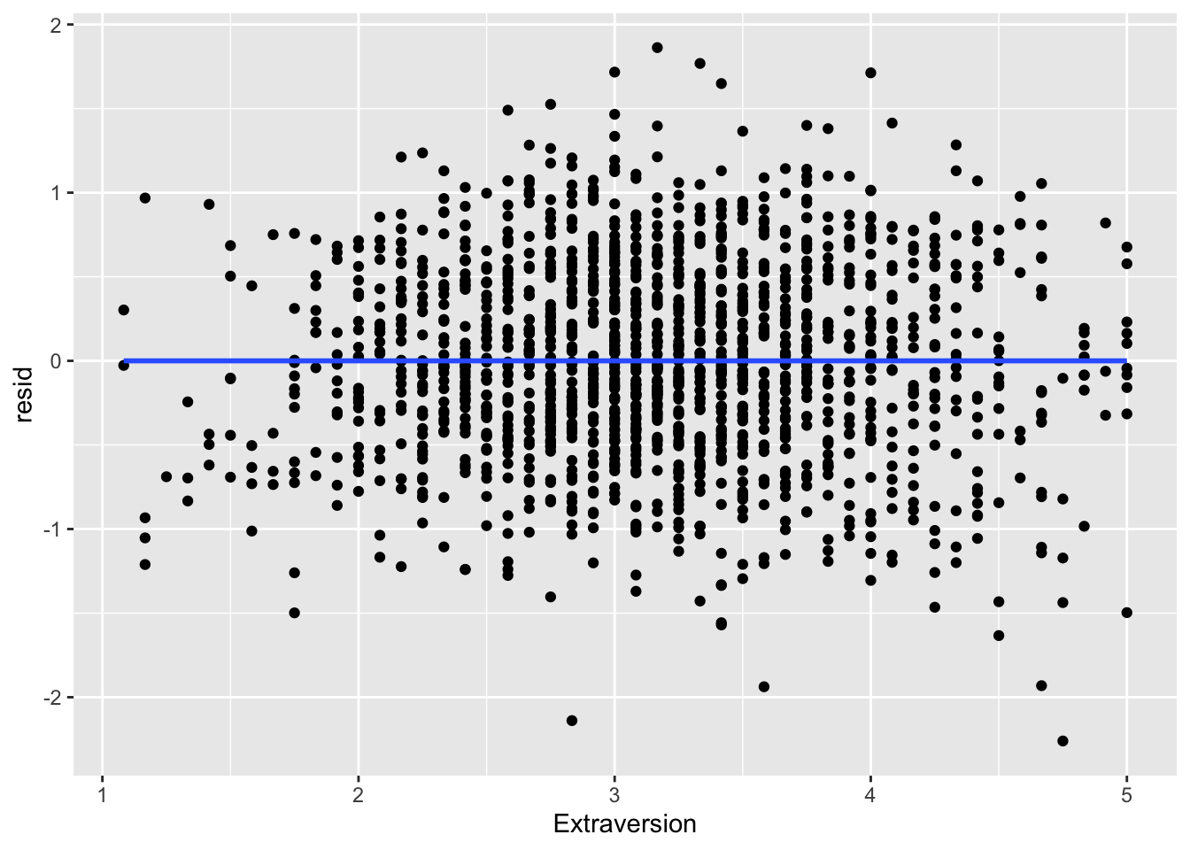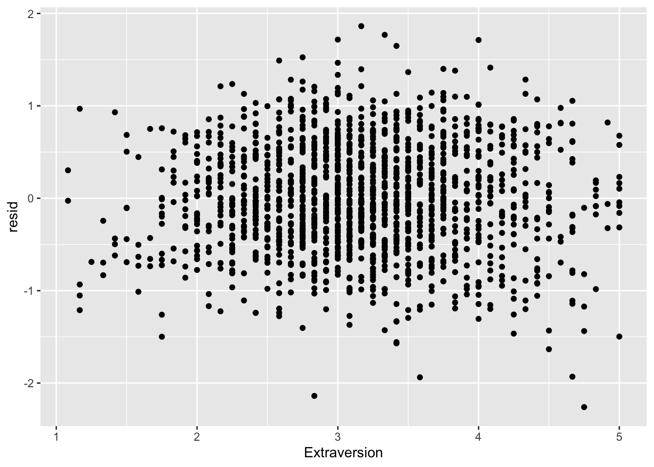 ggplot(data = big5, mapping = aes(x = Extraversion, y = resid)) +