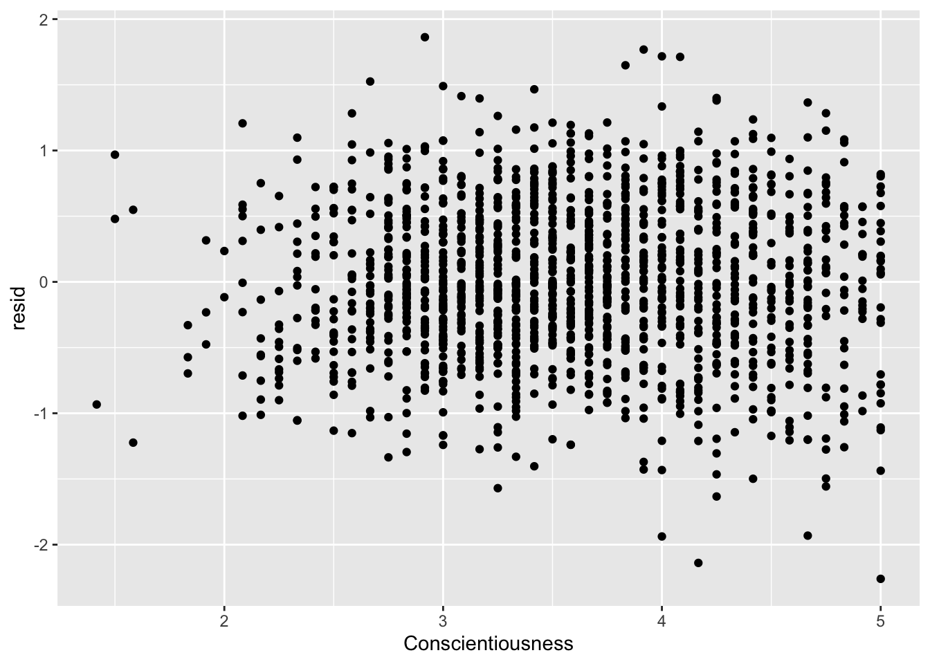 ggplot(data = big5, mapping = aes(x = Conscientiousness, y = resid)) +