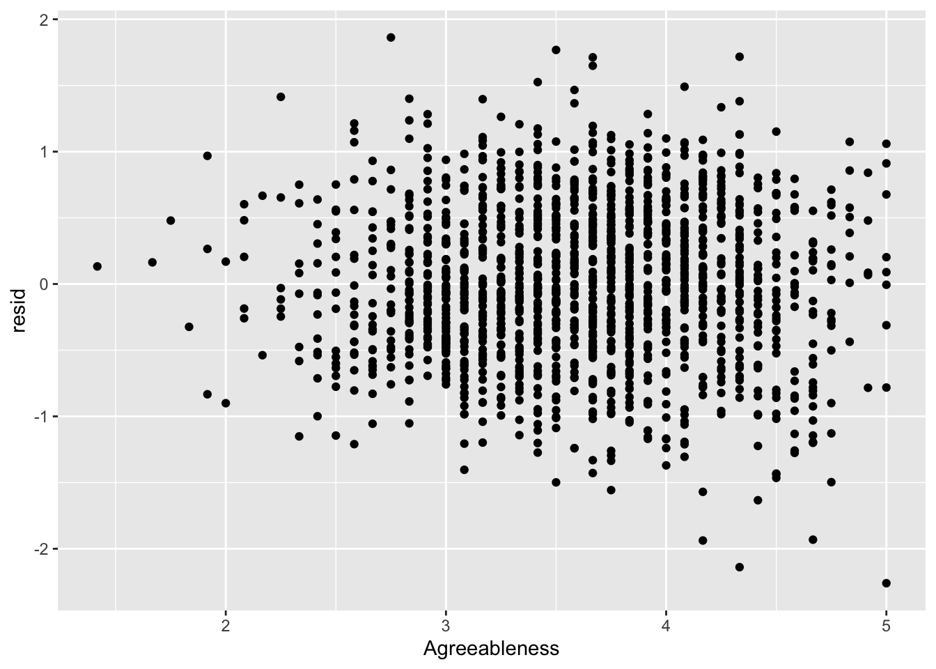 ggplot(data = big5, mapping = aes(x = Agreeableness, y = resid)) +