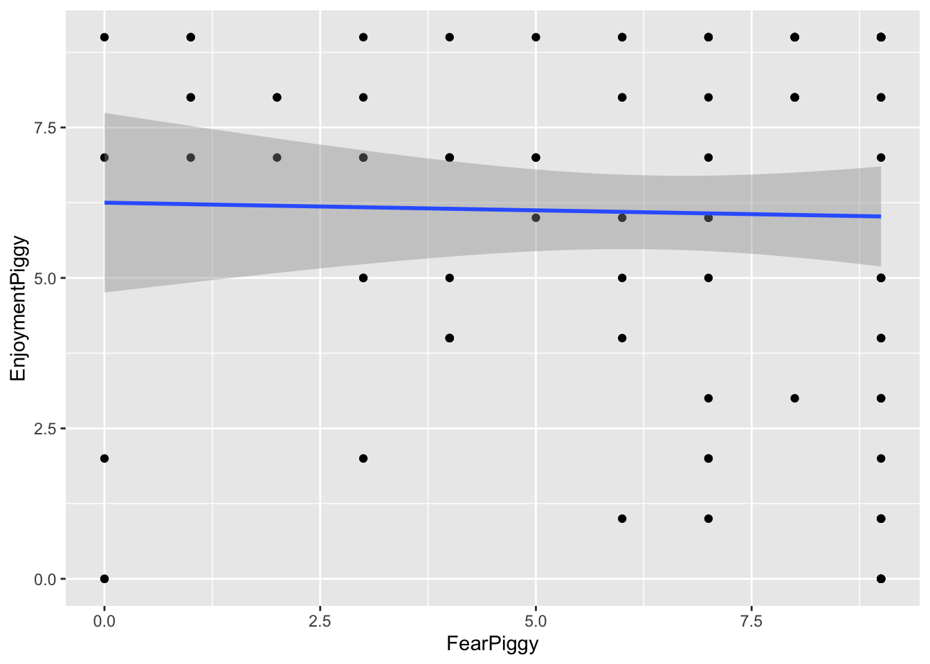 lm(formula = EnjoymentPiggy ~ FearPiggy + FearPiggy2, data = feardata)